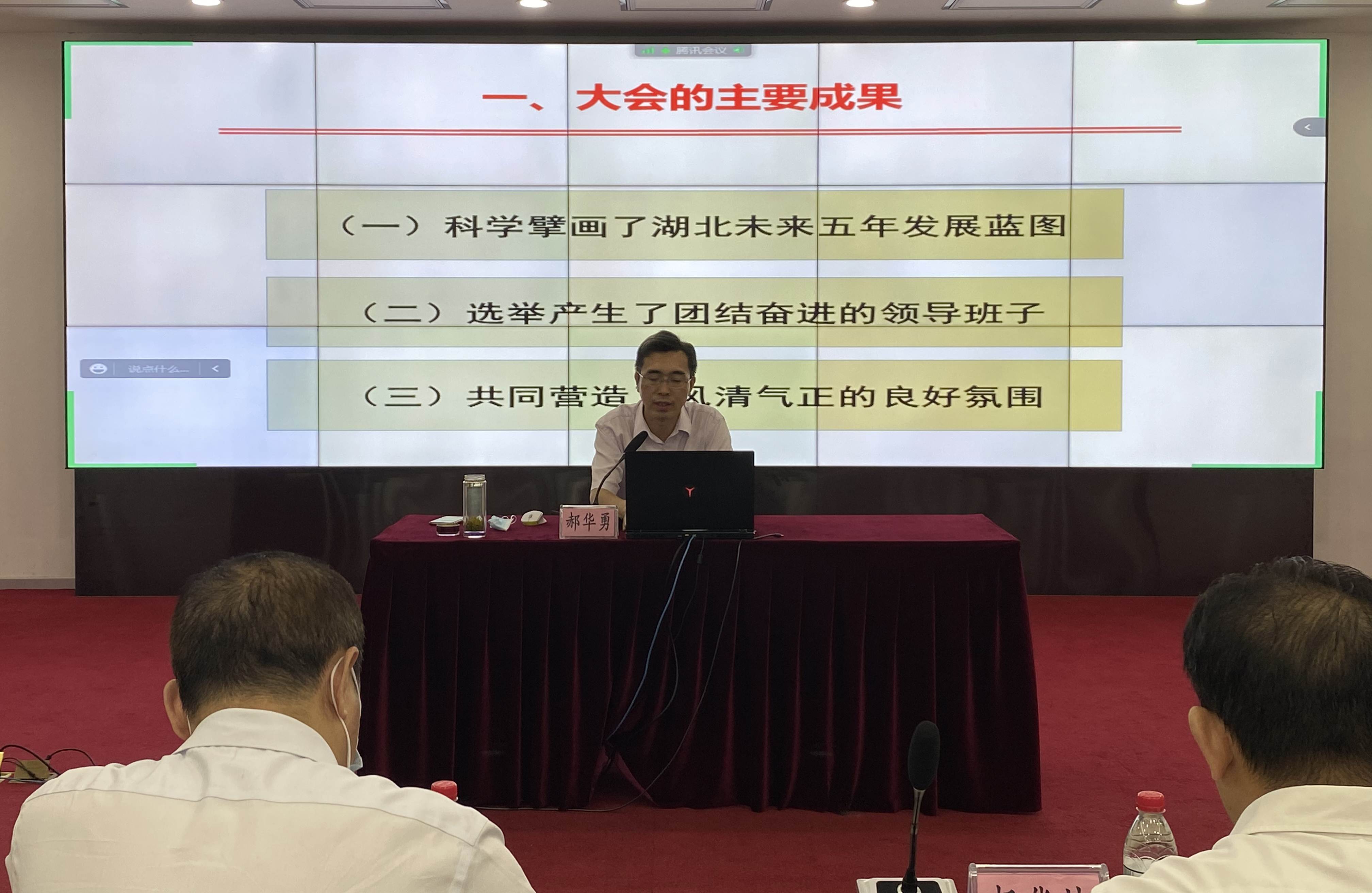 郝華勇教授以“建設先行區 奮進新征程”為題,從“大會主要成果”“報告主要精神”“落實部署任務”三大方面,深刻詮釋了習近平總書記考察湖北重要講話精神的核心要義、豐富內涵,全面解讀了省第十二次黨代會確定的目標任務、重大舉措,并強調了意識形態工作的極端重要性。