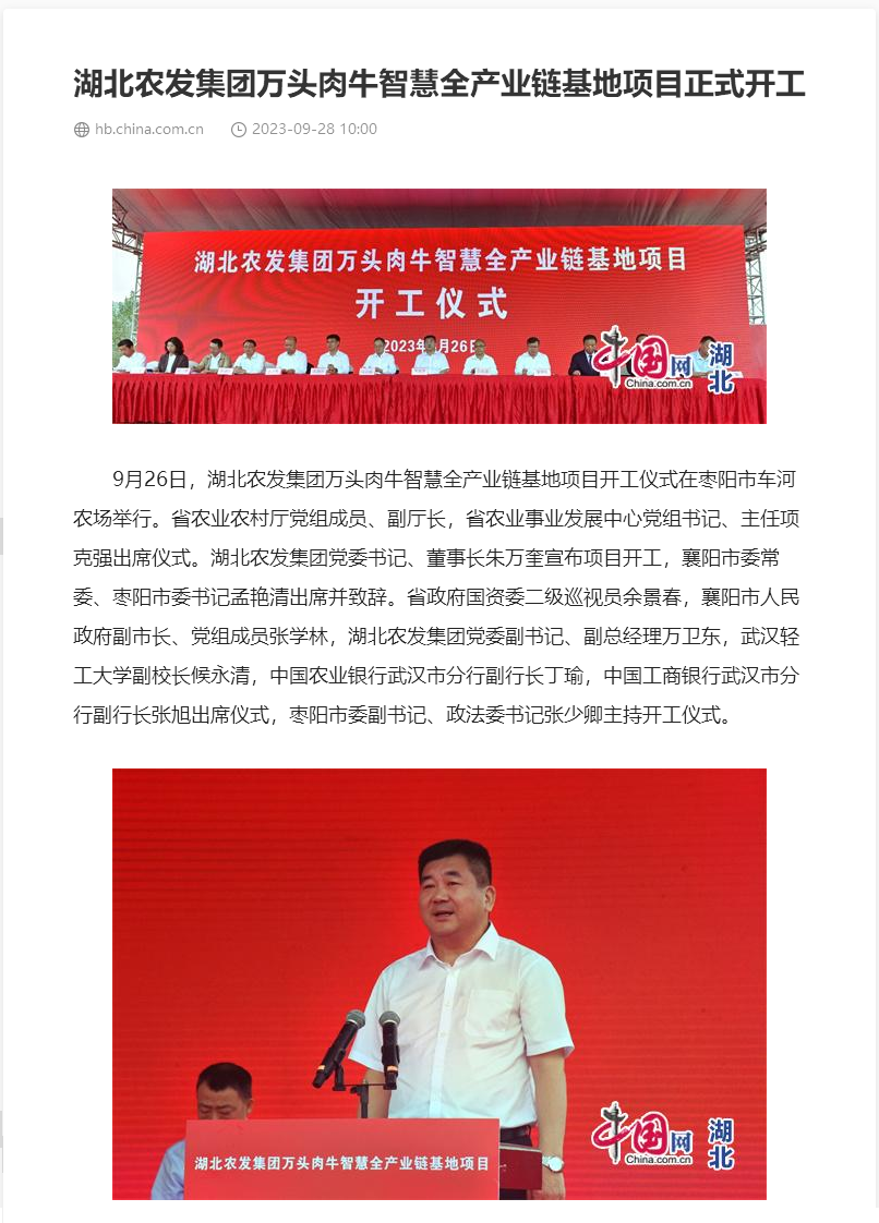 中國網:湖北農發集團萬頭肉牛智慧全產業鏈基地項目正式開工